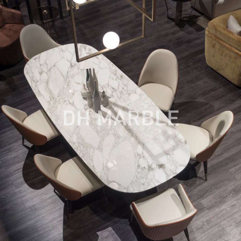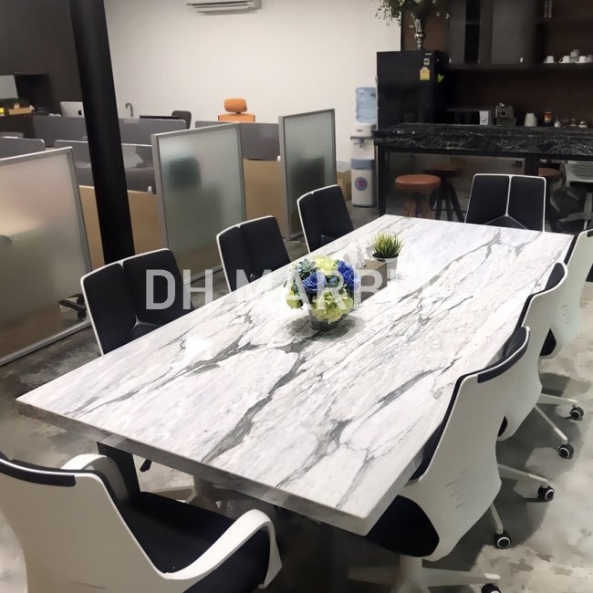 طاولة رخام Calacatta تجذب الانتباه بتصميمها الأنيق والجمالي. إنه يجلب نقاء ونبل اللون الأبيض إلى الطاولات. توجد عروق رمادية على هذا الرخام الأبيض ذو الأصل الإيطالي. مع البنية الفريدة للأوردة، تتمتع كل لوحة بمظهر فريد. يتم استخدام هذه الجودة والرخام النادر في العديد من المجالات. تعد الجداول من بين الأماكن التي يتم استخدامها فيها أكثر من غيرها.