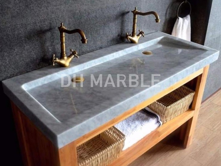 يتم استخدام أسطح الحمامات المصنوعة من الرخام الرمادي في ديكورات الحمامات الأنيقة والجمالية. الرخام، وهو صلب ومتين، مقاوم للماء أيضًا. مع هذه الميزات، تمكنت من أن تكون المادة المثالية في بناء أسطح الحمام. يتم صقل السطح الأملس للرخام الرمادي لإضفاء مظهر مشرق عليه. يتم استخدام سطح العمل الرخامي أيضًا كمغسلة كبيرة.