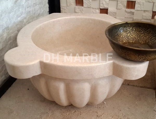 الحوض الرخامي ذو شرائح البطيخ يجذب الأنظار بتصميمه الأنيق. ويفضل في الحمامات ذات الديكورات الحنينية. توجد نقوش وعروق داكنة اللون على الرخام البيج المستخدم في إنتاج الحوض. توجد أنماط تشبه شرائح البطيخ على السطح الخارجي للحوض. السطح الخارجي للحوض أملس ومصقول، وكذلك السطح الداخلي. بهذه الطريقة تبدو ناعمة ولامعة.