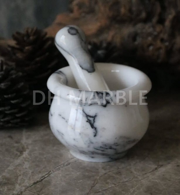 يضيف الملاط الرخامي الأرجواني الأصالة إلى الزخارف بمظهره الحنين. إنه ذو مظهر فريد من نوعه مع الأنماط والعروق الفاتحة والداكنة على الرخام الليلكى. يبدو وكأنه مجموعة كاملة مع مدقة. يحتوي المنتج، المصمم بشكل دائري، على قسم في المنتصف يسمح بحمله بشكل مريح. بأبعادها 9*9.7 سم، فإنها تجذب الانتباه على الفور في بيئتها.